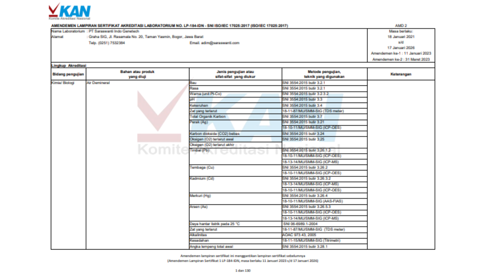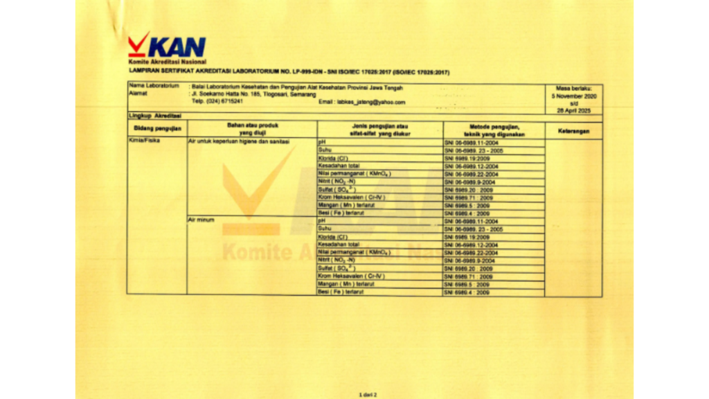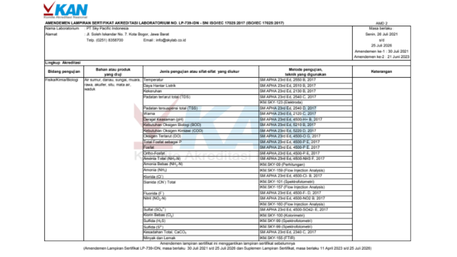 Akreditasi Laboratorium oleh Komite Akreditasi Nasional (KAN) dengan standar ISO/IEC 17025:2017 merupakan sebuah penilaian dan pengakuan bahwa suatu laboratorium memiliki kompetensi yang layak atas hasil uji atau kalibrasinya.