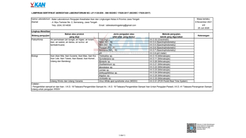 Balai Laboratorium Pengujian Kesehatan Ikan dan Lingkungan Kelas A Provinsi Jawa Tengah
