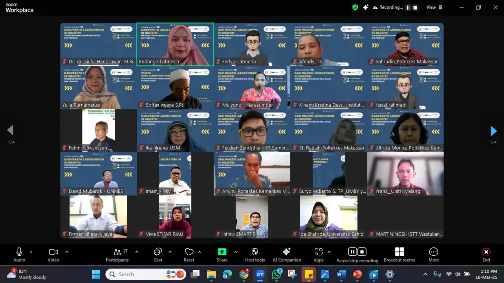 Pada Selasa, 18 Maret 2025, Labnesia kembali mengadakan webinar bertajuk “Dari Praktik Laboratorium ke Industri: Sukses Berkarir di Bidang R&D, QC/QA, dan Produksi”. Acara ini diikuti oleh lebih dari 200 peserta dari berbagai sektor, termasuk akademisi, pemerintah, serta industri swasta. Webinar ini bertujuan untuk memberikan wawasan mendalam mengenai transisi dari laboratorium akademik ke industri, serta membahas berbagai peluang karir di bidang Research & Development (R&D), Quality Control/Quality Assurance (QC/QA), dan Produksi.