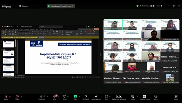 Melalui Bootcamp Standar Laboratorium bertema “Optimasi Laboratorium Pengujian: Implementasi & Akreditasi ISO/IEC 17025:2025”, Labnesia kembali menunjukkan komitmennya dalam membangun laboratorium unggul di Indonesia. Kegiatan ini dilaksanakan pada Kamis, 5 Juni 2025, dan secara khusus membahas Klausul 6.3 ISO/IEC 17025:2025 tentang Manajemen Kondisi Fasilitas dan Lingkungan.