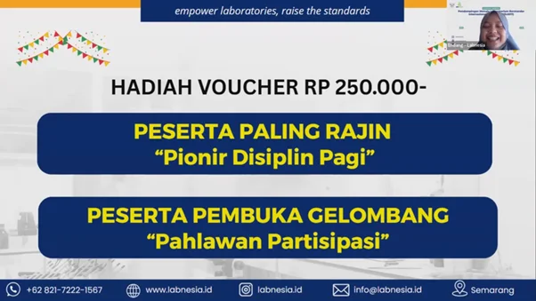 Sebagai bentuk apresiasi, voucher pelatihan eksklusif diberikan kepada seluruh peserta, sekaligus membuka peluang kolaborasi antar pelaku laboratorium dari berbagai sektor.